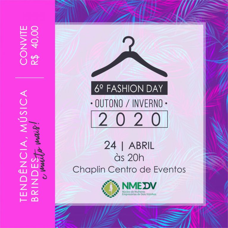 O Núcleo de Mulheres Empresárias de Dois Vizinhos, já dispõe de convites para o Fashion Day. O evento acontece em sua 6ª edição dia 24 de abril, no Chaplin Centro de Eventos.