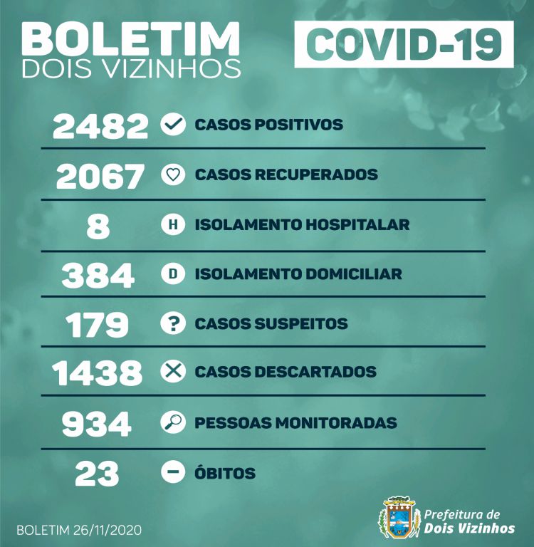 Boletim da Covid-19 atualizado para Dois Vizinhos