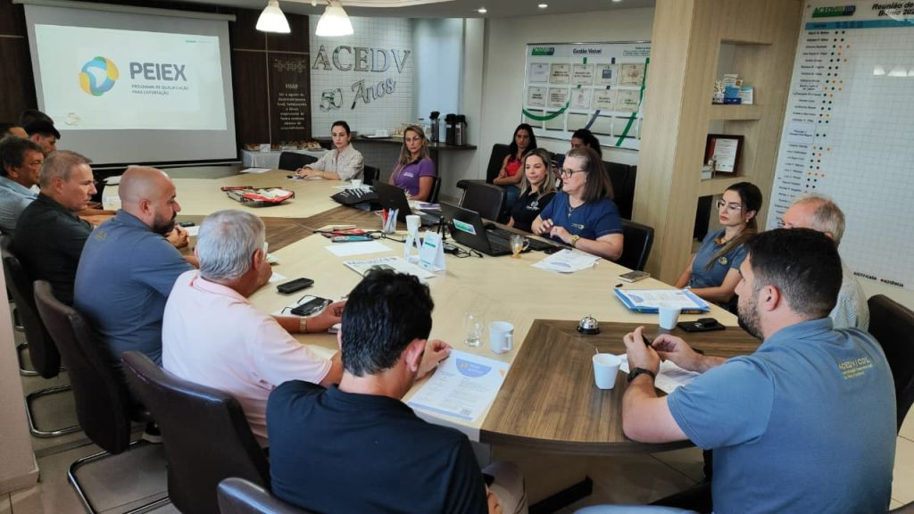O consultor do Sebrae, Francisco Acordi, apresentou o Programa de Qualificação para a Exportação (PEIEX), oferecido gratuitamente pela ApexBrasil. Ele destacou que no dia 8 de abril um especialista estará na ACEDV/CDL para atender empresários interessados em exportação.