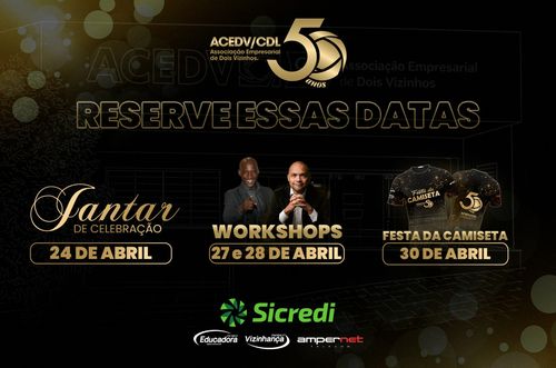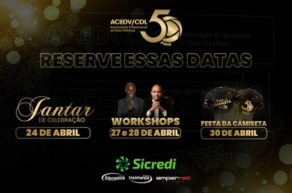 A Associação Empresarial de Dois Vizinhos (ACEDV/CDL) completa cinquenta anos de história e preparou uma programação especial para marcar o cinquentenário. Serão quatro momentos de celebração, reunindo homenagens, capacitação e entretenimento.
