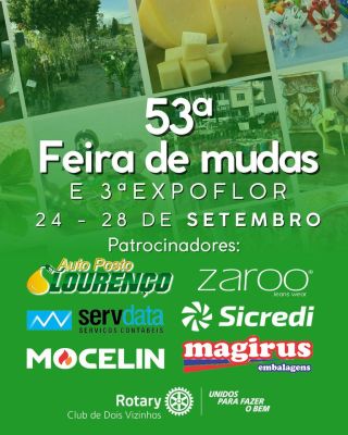 De 24 a 28 de setembro, o Centro Comunitário da Igreja Imaculada Conceição será palco de um dos eventos mais tradicionais que o Rotary Club de Dois Vizinhos promove: a Feira de Mudas, que chega à sua 53ª edição, e a 3ª Expoflor, trazendo ainda mais cores, aromas, muitas novidades e experiências para toda a família.
