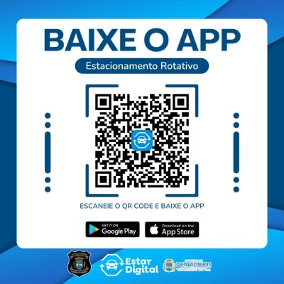 Baixe gratuitamente no seu celular através da sua loja de APP ou clique no QR Code na imagem a seguir.