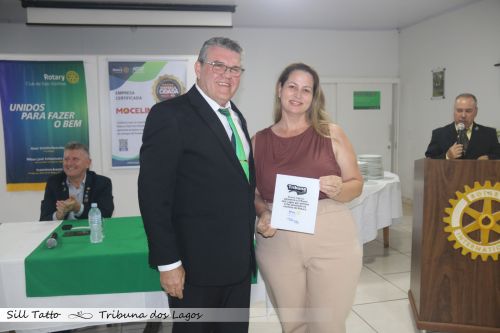 Além disso, empresas parceiras e patrocinadoras das ações do Rotary foram homenageadas, em reconhecimento ao apoio fundamental que fortalece os projetos sociais e comunitários desenvolvidos pelo clube.