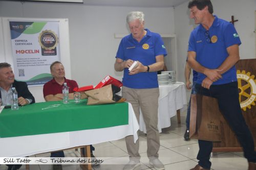 Durante o encontro, o rotariano Wilson Roque Borsatti recebeu o título de Paul Harris Safira, uma das mais importantes distinções do Rotary Internacional, concedida a quem contribui de forma significativa para os projetos e ações da instituição.